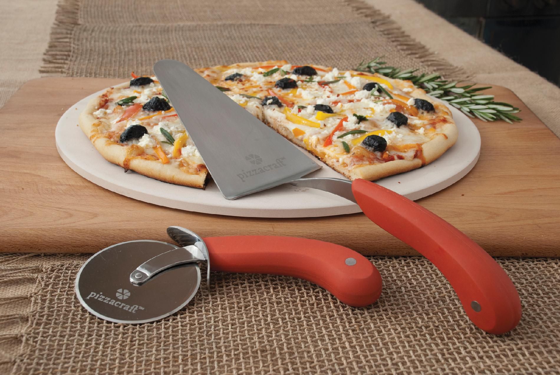 Pizzacraft Round Pizza Stone with Cutter & Server / 3PC Set White